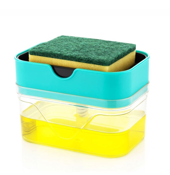 INSIOX 2-in-1 Kitchen & Bathroom Soap Dispenser with Sponge Dish Wash Sink Soap Pump Holder Liquid Dispenser Liquid Gel Shampoo Dispenser Kitchen & Bathroom Accessories & Bottle Cleaning